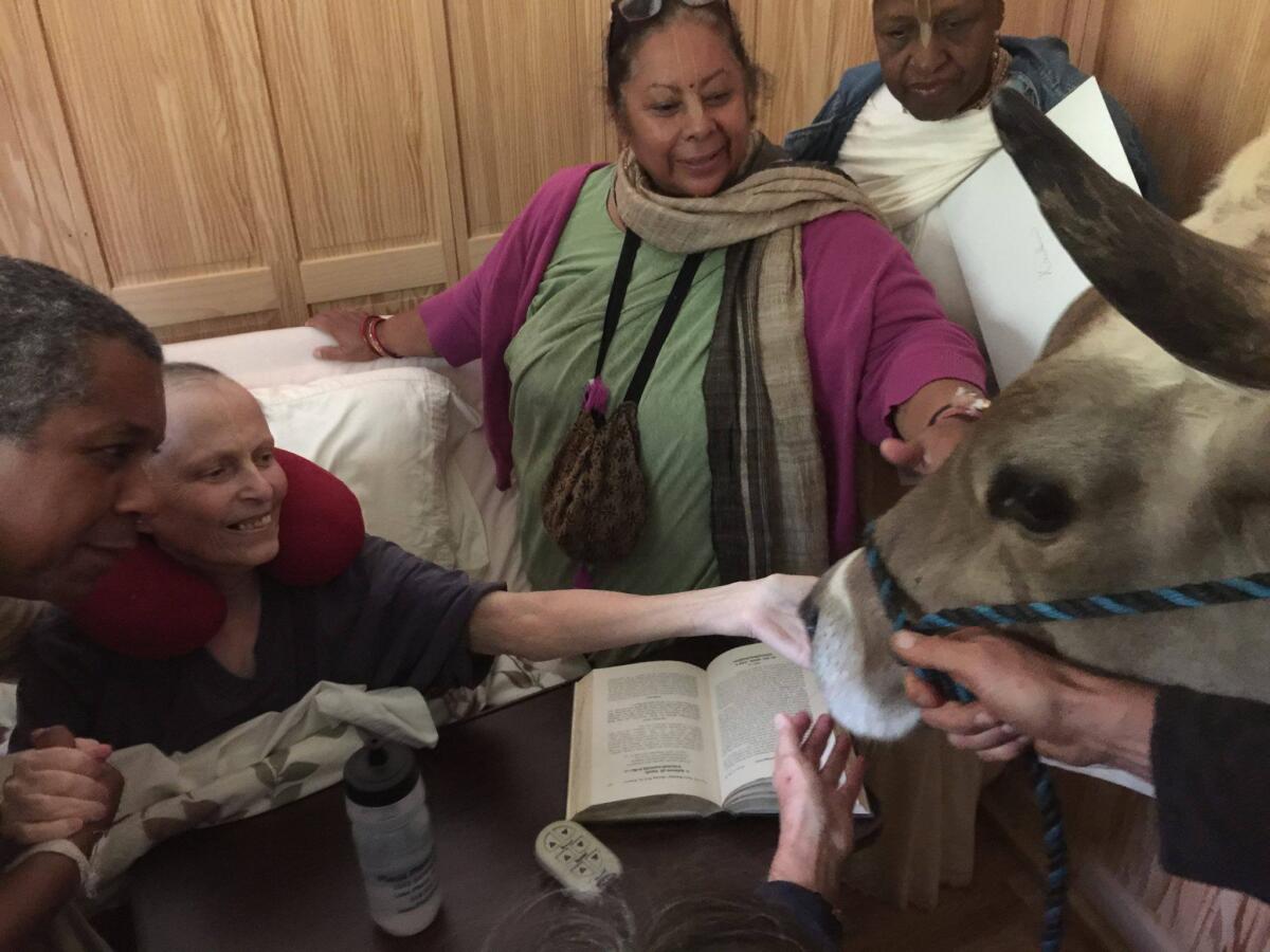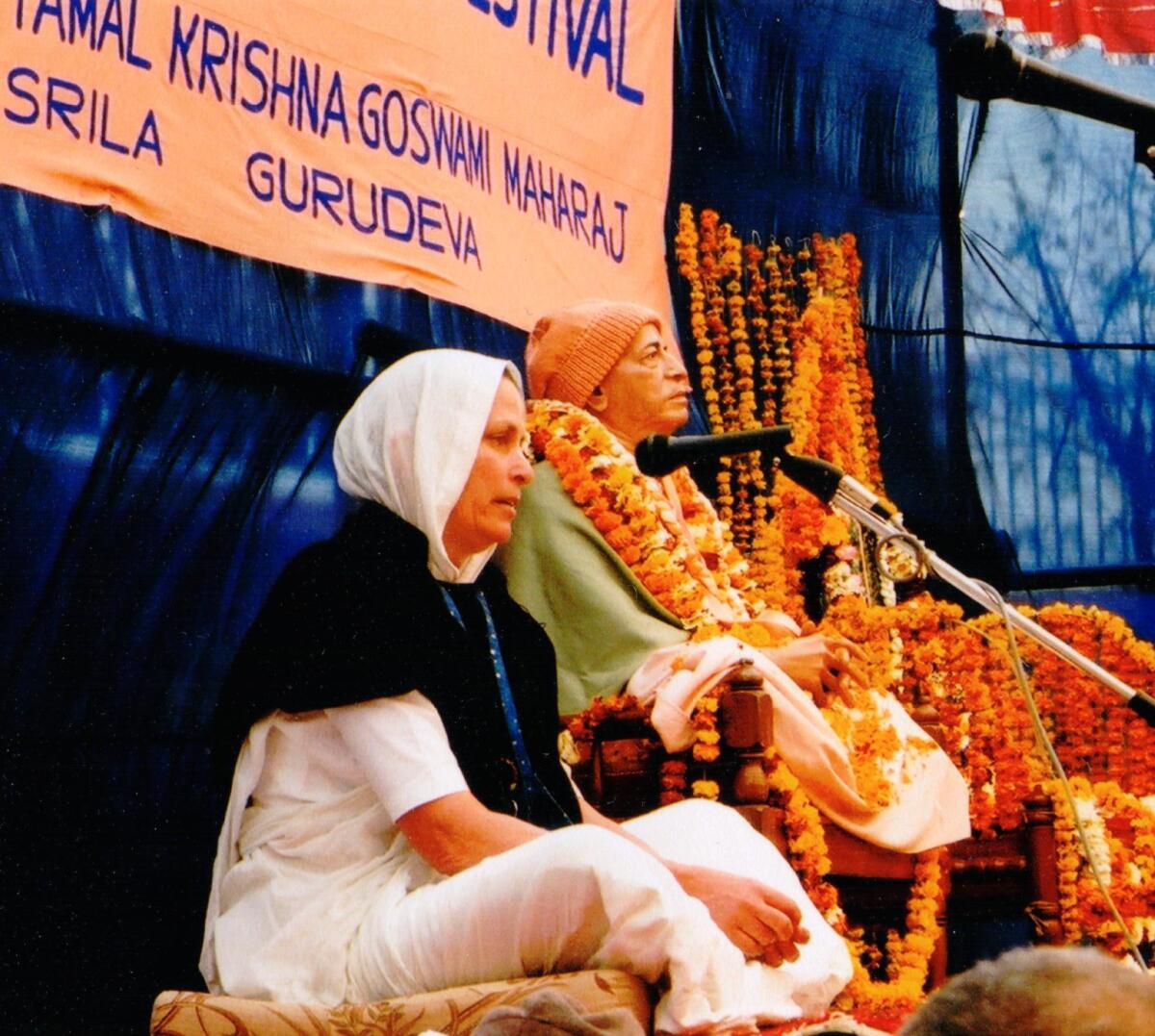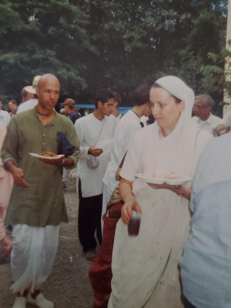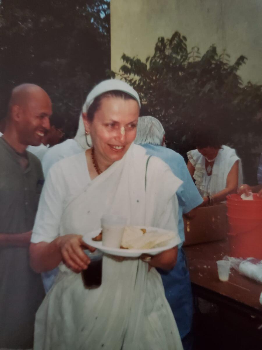 Ее муж принял санньясу, когда их сыну было четыре года. А в ИСККОН тогда были нелёгкие времена. Она была настолько предана Прабхупаде, что подумала, что нужно позволить мужу проповедовать, поскольку это более важно, чем оставаться дома и заботится о ней. И она никогда не жаловалась. И он был очень благодарен ей.