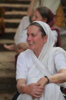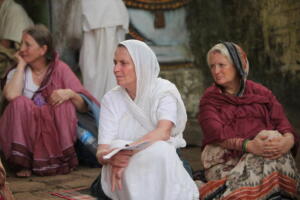Я бы хотел немного рассказать о матушке Каулини. Мы фактически были соседями. Мой дворик граничил с её домом. Она проявила себя как святая женщина, всегда занятая служением Кришне. Это было очень скромное и простое служение, — подобное работе пожарных, — когда постоянно кому-то готовите, за кем-то убираете, кому-то служите. Она отдавала свою жизнь Прабхупаде с искренней преданностью. Говорят, что Шачи-сута и Кели-лалита заботились о ней последние 10 лет. У неё были разные заболевания. Когда она поняла, что ей уже не станет лучше, она вернулась в Гита-нагари. И однажды Божества Радхи-Дамодары пришли в её комнату. Это не так, что кто-то просто перенес Божества Радхи-Дамодары: фактически Божества сами сошли с алтаря в её комнату, чтобы поблагодарить свою служанку. В течение многих лет она ухаживала за коровами и оставалась в Гита-нагари, служа Им в критический период, когда многие преданные уехали из фермы. Но этого всего недостаточно, чтобы рассказать о ней. Главное то, что Прабхупада проявил к ней свою любовь, поскольку в самом конце ее жизни, в последние три дня, он устроил так, что она переехала в Гита-нагари, где она служила ему всю жизнь.
